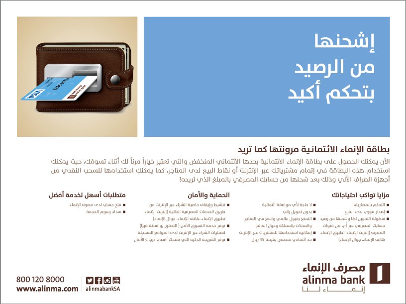 مصرف الإنماء V Twitter تسوق بمرونة وأمان مع بطاقة الإنماء الائتمانية ذات الحد الائتماني المنخفض احصل عليها واشحنها وتسوق