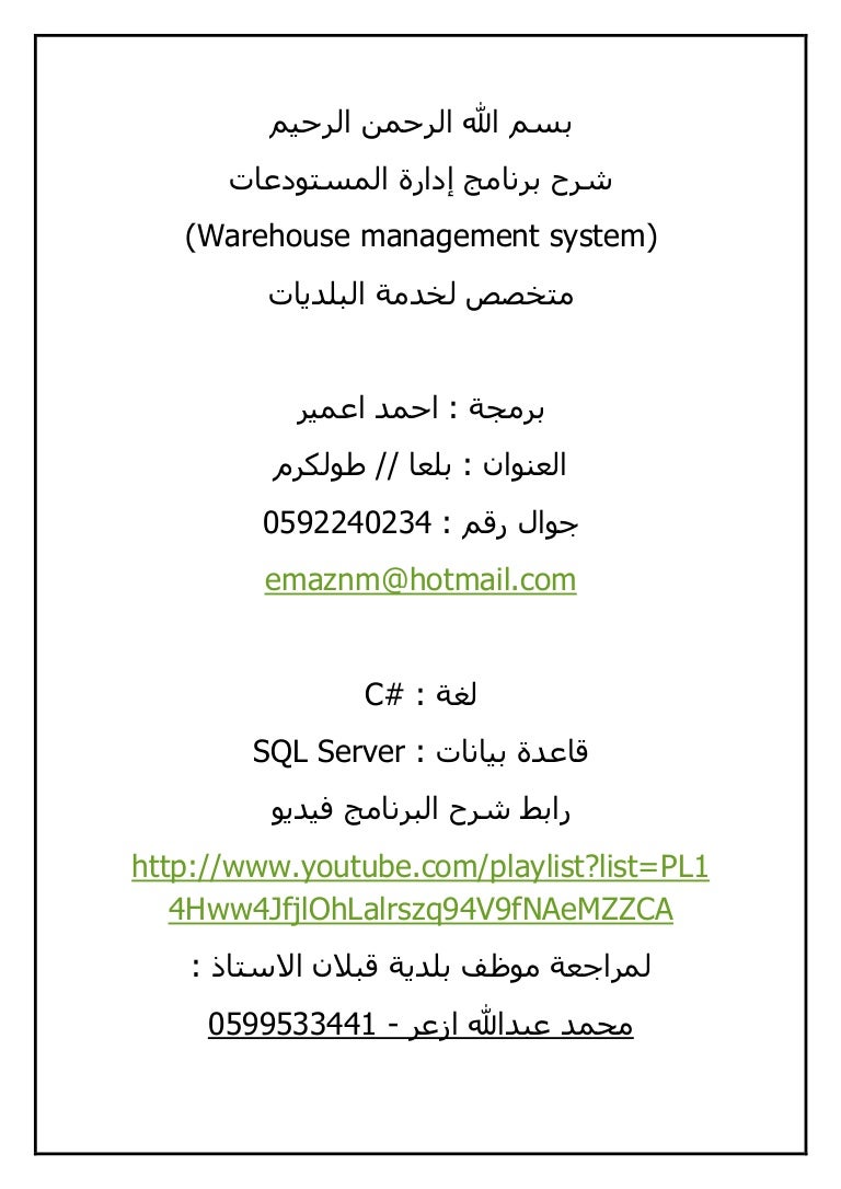 شرح برنامج إدراة المستودعات Warehouse Management System