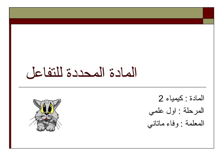 بحث عن المادة المحددة للتفاعل الكيميائية عربي